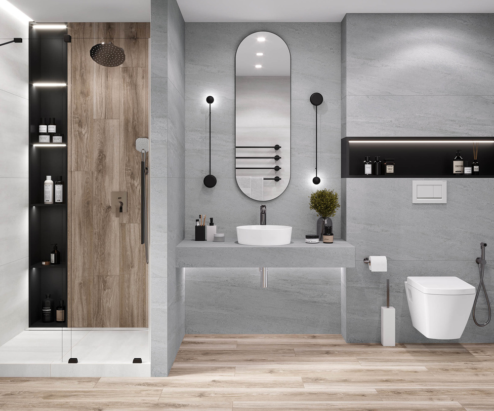 • Керамогранит превосходит натуральный камень по твердости, устойчив к перепадам температуры и появлению пятен