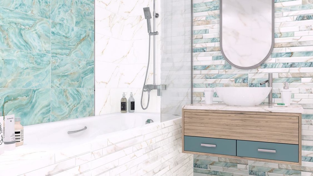 Настенная плитка имеет размеры 24,9x50 см, толщину: 7,5 мм. Глянцевая поверхность имеет рисунок под мозаику. Эта плитка применяется для облицовки стен внутренних помещений: ванной, туалета. Alma Ceramica Adelia (Альма Керамика Аделия) - это высококачественная керамическая плитка, производство Россия.