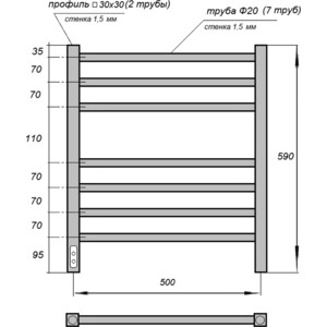 Полотенцесушитель П7 500х600 электрический, диммер слева, черный