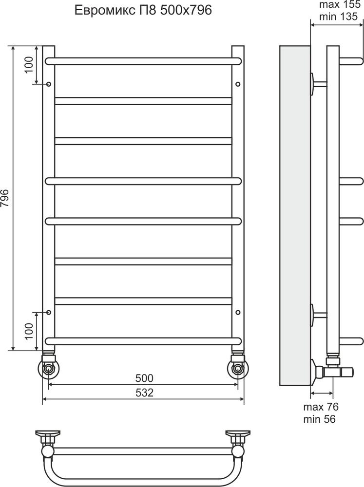 Полотенцесушитель Евромикс TERMINUS П8 500*800 D32