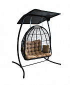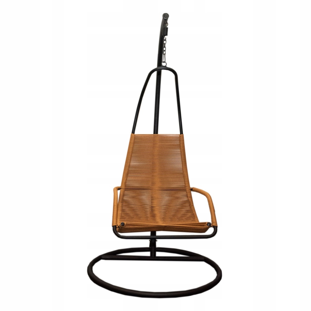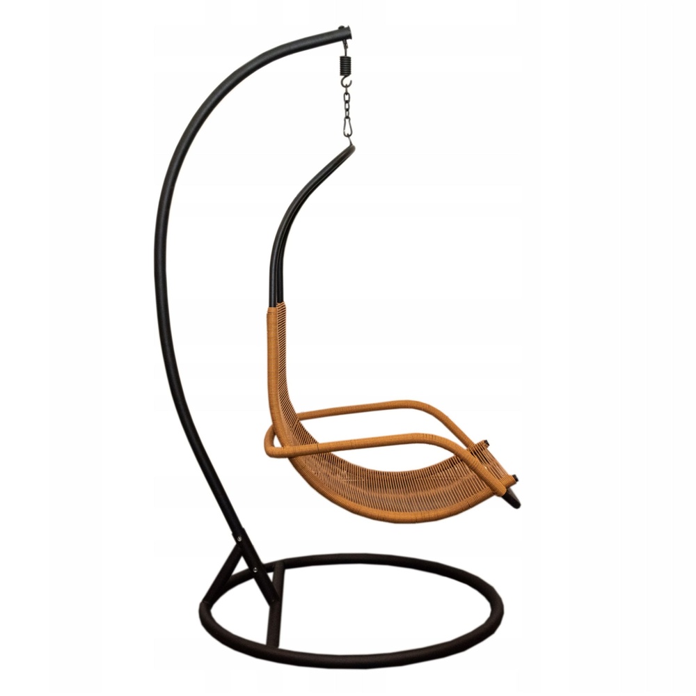 Подвесное кресло F-12 - это современный минималистичный дизайн, исключительное удобство, кресло "подстраивается" под вас. - Стойка и основание: металл, порошковая покраска, цвет черный матовый. - Спинка, сидение и оплетка подлокотников: искусственный ротанг, цвет темный мед. - Без подушки. Комфортное использование без подушки.
