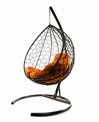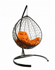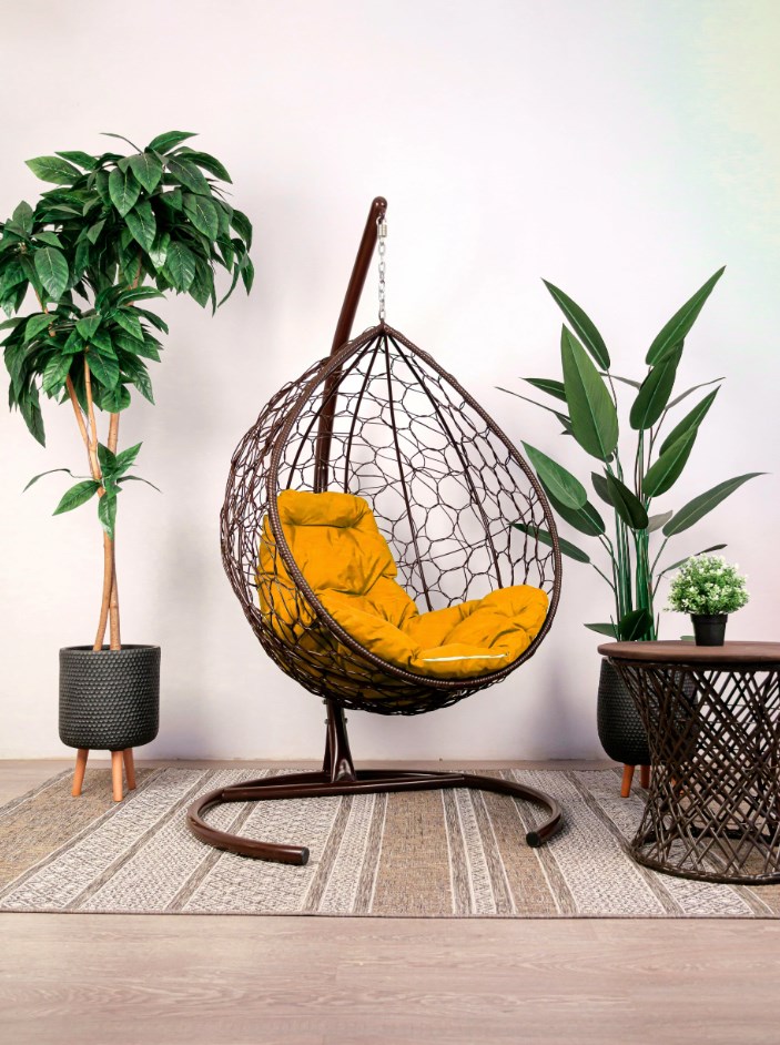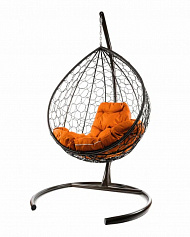Подвесное кресло КАПЛЯ Ротанг (КОРИЧНЕВЫЙ),подушка оранжевая в ассортименте