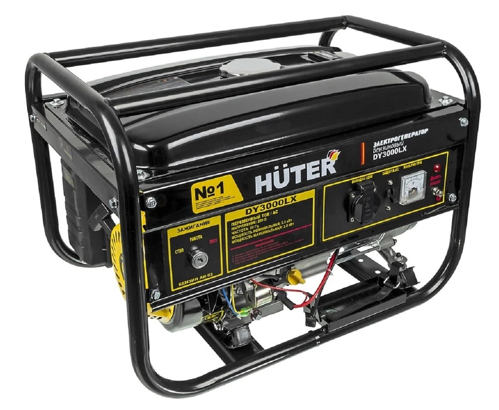 Бензиновый электрогенератор Huter DY3000LX с электростартером используется вдали от населенных пунктов, на стройплощадках, в местах с отсутствием проводки для электропитания различного оборудования. Оснащается четырехтактным двигателем мощностью 6.5 л.с и производит до 2.5 кВт электроэнергии.