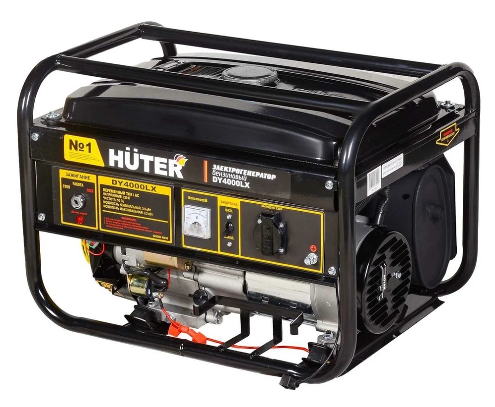HUTER DY4000LX – синхронный генератор щеточного типа. Он оборудован четырехтактным одноцилиндровым двигателем, который имеет воздушное охлаждение. Прибор оснащен бензобаком объемом 15 л, в качестве топлива используется бензин АИ-92. Можно применять газовое топливо (пропан/пропан-бутан), если установить специальное оборудование.