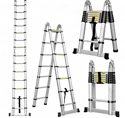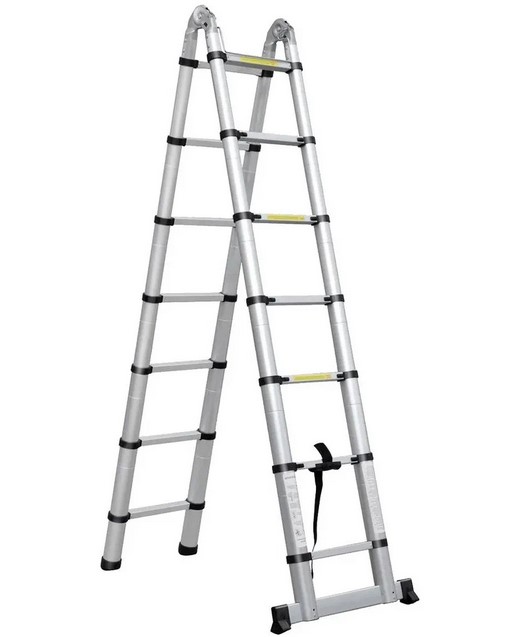 Лестница телескопическая алюминиевая 440 см, 15 кг STARTUL (ST9733-044) имеют широкий спектр применения. Используются при работах, производимых на высоте, превышающей человеческий рост. Преимуществами данной лестницы является возможность регулировки высоты подъема и компактные размеры в сложенном виде. Технические характеристики: Тип - телескопическая двухсекционная; Количество ступеней - 2х7; Расстояние между ступенями 30 см; Модификация (высота) - двусторонняя стремянка (209 см); Расстояние между опорами лестницы в модификации стремянка 110 см; Размер при хранении в сложенном виде (высота) 87 см; Ширина лестницы (от опоры до опоры) 48 см; Общая ширина лестницы (с подставкой) 67 см; Максимальная нагрузка 150 кг; Толщина профиля 1,3-1,5 мм.