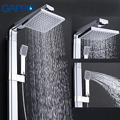 Современная душевая система с верхним душем серии G2401 GAPPO выполнена из латуни в цвете матовый с хромом, высота 1140 мм. В комплекте душевая лейка 200х200 мм с держателем. Поворотный переключатель с тропического душа на душевую лейку производится поворотом, а так же в комплекте душевой шланг и шланг для подключения к смесителю. Идеально подходит для установки в душевых углах и кабинах, а так же в ваннах.