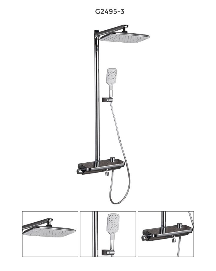 Душевая система с термостатом GAPPO G2495-3 Материал латунь Излив поворотный Термостатический картридж G55-2 В комплекте тропический душ , лейка 3 режима, шланг 1,5 м, набор эксцентриков