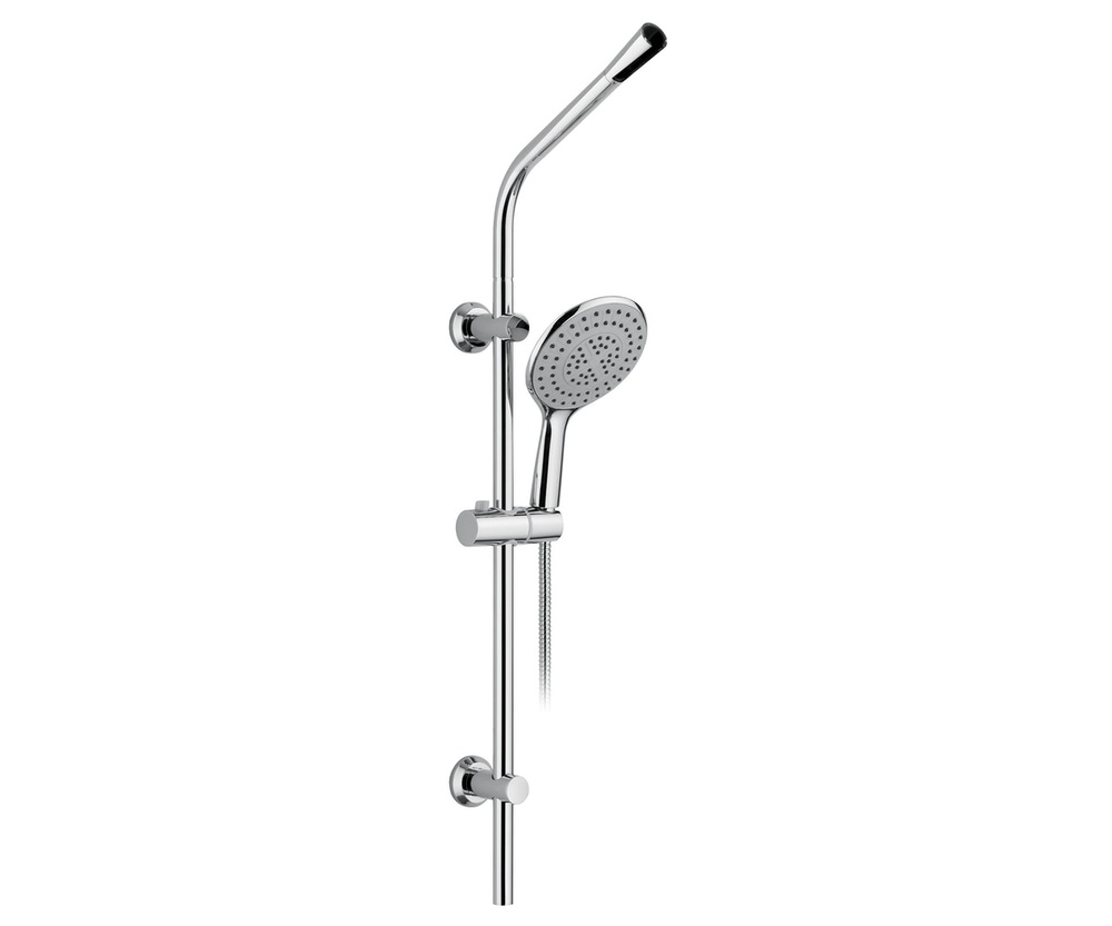 Стойка снабжена подвижными креплениями, позволяющими заменить старую стойку без дополнительных отверстий в стене. Уникальный верхний держатель и увеличенный диаметр ручного душа позволяют использовать гарнитур как душевую систему, что дарит ощущение свободы и не сковывает движения во время принятия душа. Трансформация ручной лейки в верхнюю душевую насадку осуществляется одним движением, переставить в специальный разъем наверху стойки.