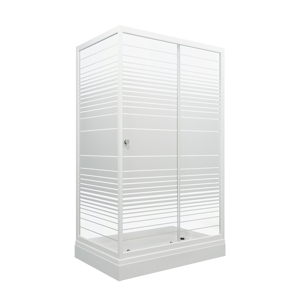 Душевое ограждение "Фьюжн 100*80 A с низким прямоугольным поддоном, стекло Полосы, профиль Белый