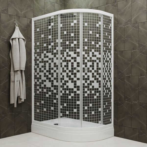 Душевое ограждение Triton Коралл 120*80 А,низкий поддон,1/4 круга белый, стекло Мозаика, левая