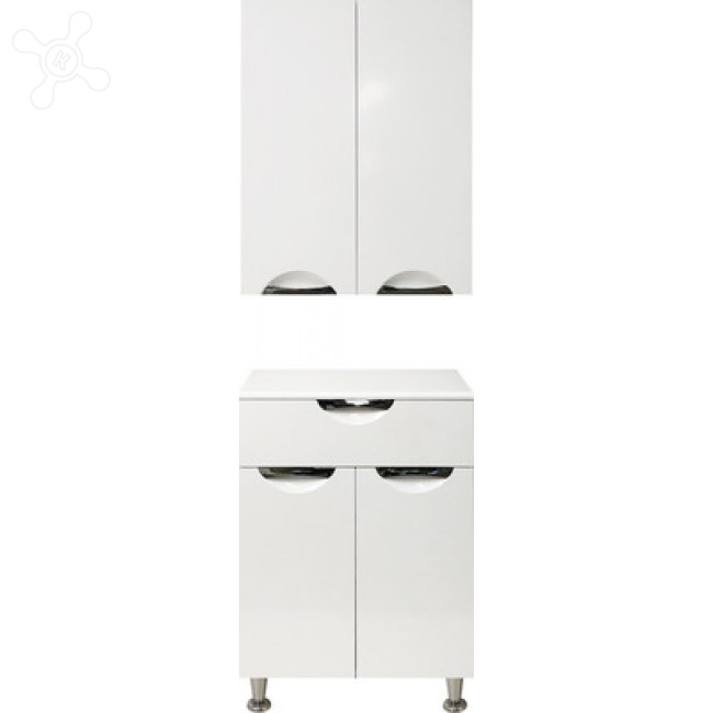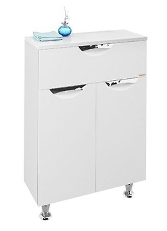 Тумба напольная для ванной комнаты Лира 60 см (цвет белый) произведена в России фабрикой ВОДОЛЕЙ А+, материалом для изготовления послужил ламинированный ДСП и МДФ, пропитанные специализированным составом для обеспечения влагостойкости и увеличения срока службы. Тумба напольная Лира состоит из двух распашных дверок со стильными врезными ручками и двух просторных полочек за ними и удобного выдвижного ящика.