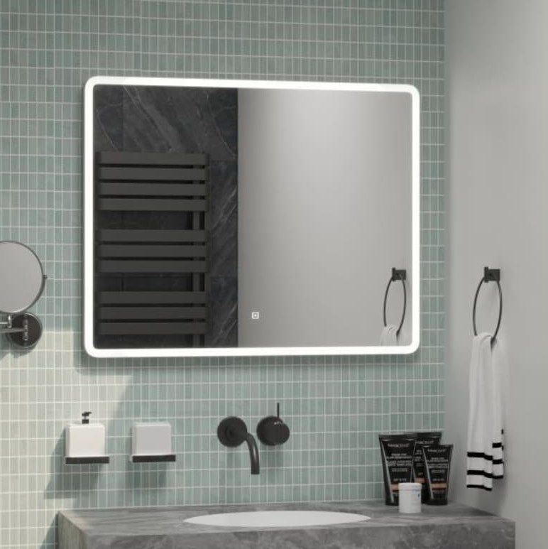 Зеркало MIRSANT Spectr выполнен в современном стиле с элегантными закруглёнными углами. По периметру всего изделия предусмотрена подсветка. Белый цвет свечения сделает принятие гигиенических процедур наиболее комфортным даже в помещениях со слабым освещением. Благодоря подвесному типу монтажа вы без труда сможете расположить данную модель в наиболее удобном месте ванной комнаты. Сенсорное управление подсветкой расположено на лицевой стороне зеркала в нижней стороне.