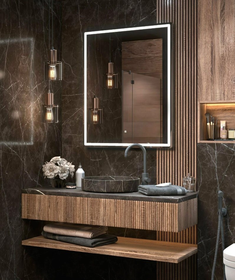 Скругленные углы зеркального полотна и повторяющая периметр подсветка, большая отражающая поверхность - изящные и функциональные акценты LED-зеркала Roberta Classic. Подсветка с ровным рассеивающим свечением создаёт атмосферу уюта в ванной комнате. Задняя стенка: пластик ABS - обладает высокой устойчивостью к внешним воздействиям, в том числе и к влаге, что делает его прочным и долговечным.