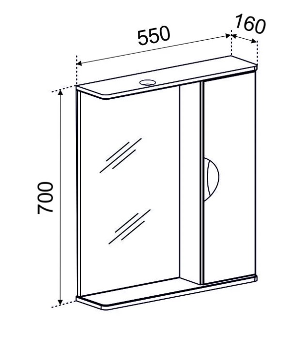 Зеркало-шкаф Милли 55 правое с подсветкой EMMY 210010