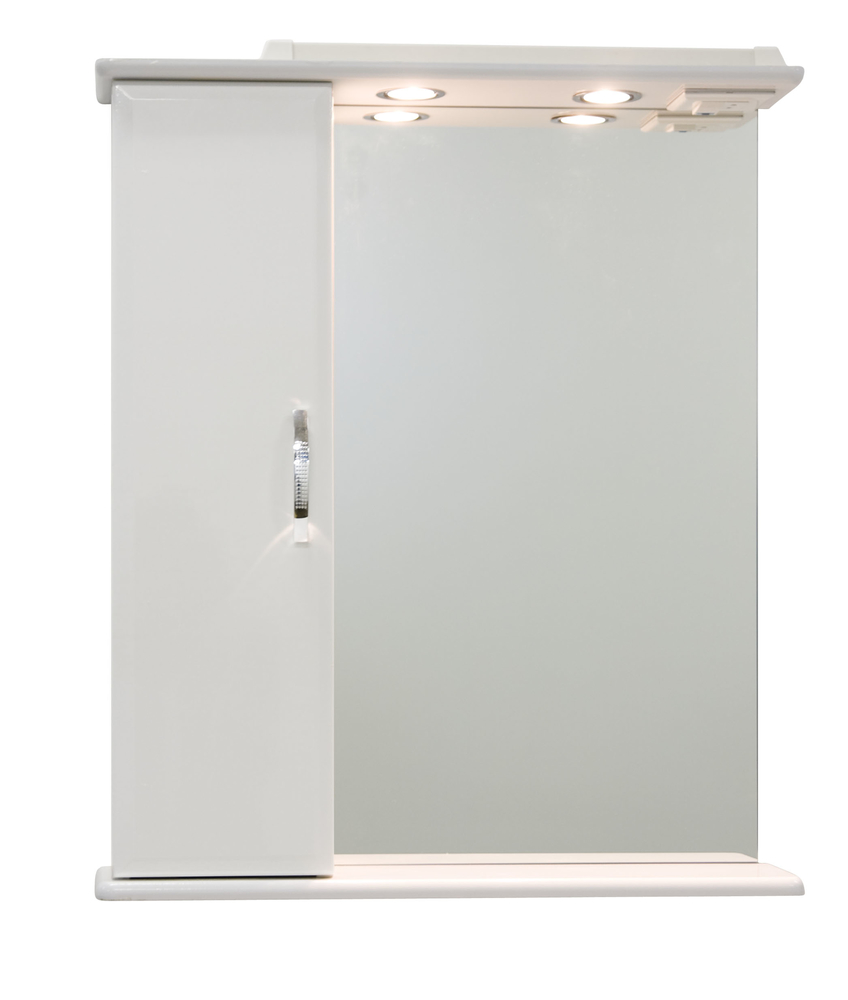 Зеркало Колумбия 65 смело можно назвать не только стильным украшением интерьера, но и весьма фукциональным. Мягкая подсветка, дополнительный шкафчик сбоку от зеркального потолна делают этот предмет интерьера ванной комнаты практичным и удобным.