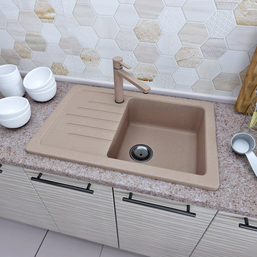Рабочая поверхность изделия покрыта декоративно-защитным слоем (гелькоут). Данное покрытие придает кухонной мойки красивый вид и надежно защищает от различных воздействий. Мойка с таким покрытием не впитывает грязь, жир и различные красители.