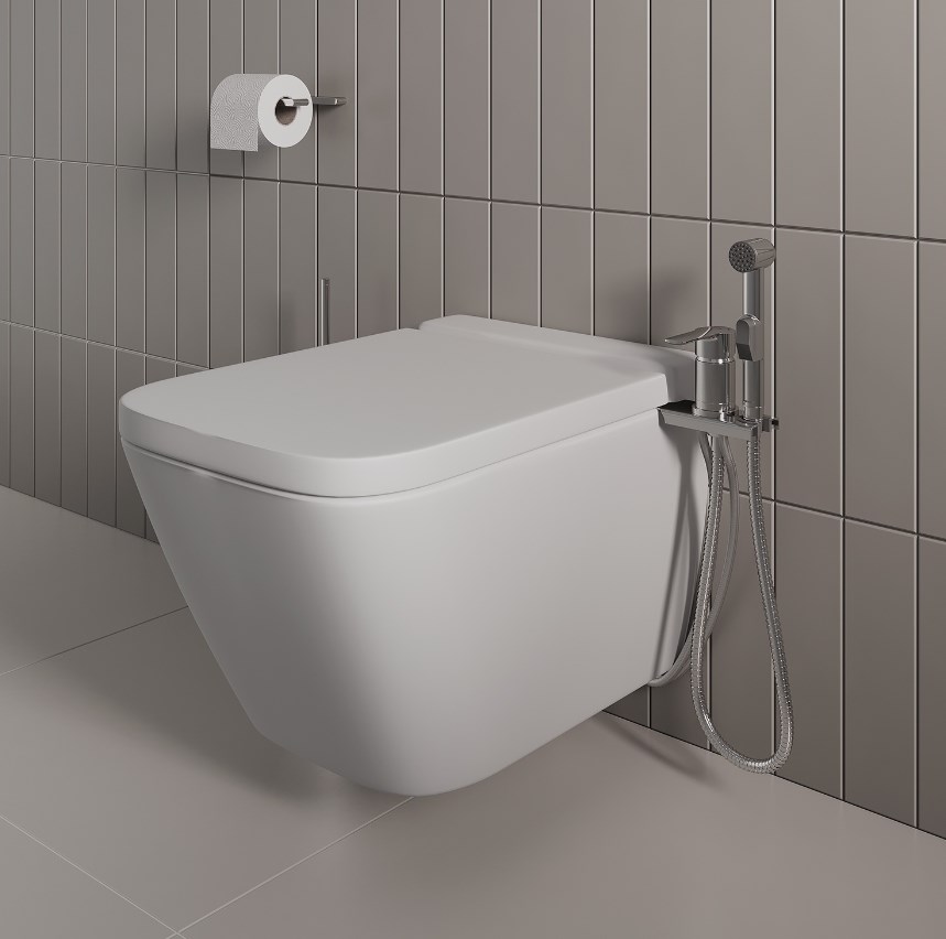Компактное решение для помещений, где не предусмотрено место для встраиваемой сантехники или полноценного биде – смеситель с гигиенической лейкой Tidy. Он обеспечит дополнительный комфорт без лишних затрат на новый ремонт. Смеситель подходит для современных унитазов разного стиля и формы.