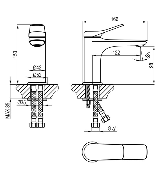 Смеситель выполнен из латуни, что обеспечивает его прочность и долговечность. Хромированное покрытие придает изделию стильный и современный вид, а также защищает его от коррозии.