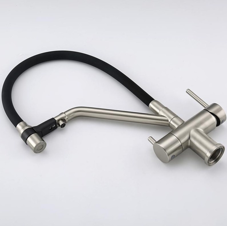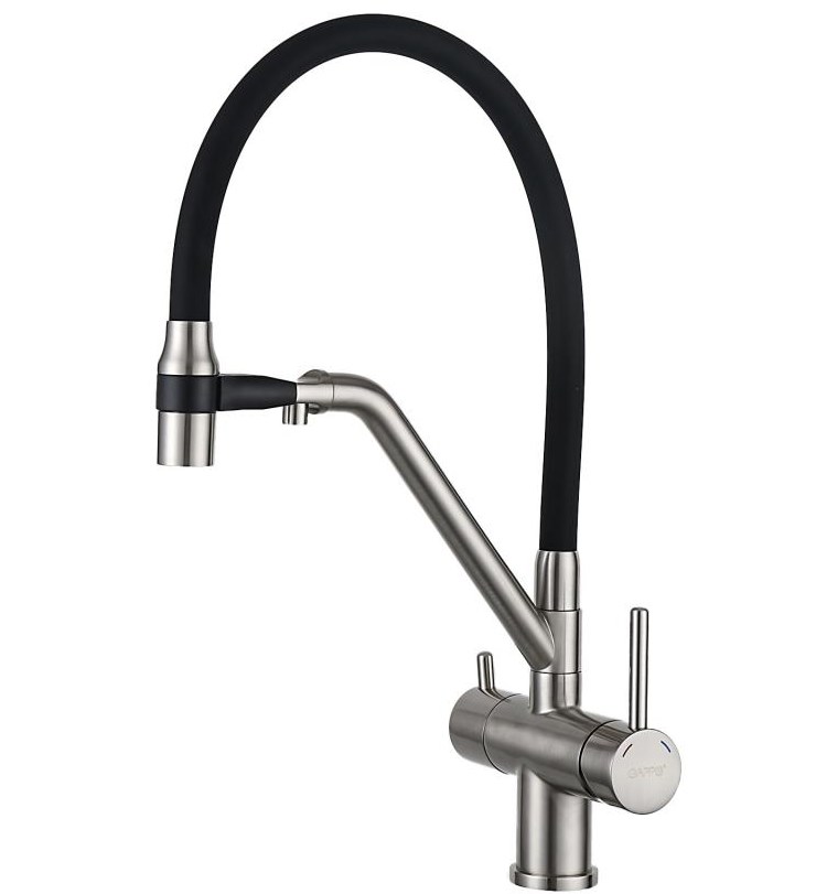 Смеситель для кухни с гибким изливом Gappo Идеально подходит для кухонной мойки, для любого типа раковины. Высокий смеситель с однорычажным переключением и поворотным гибким изливом. Сантехника GAPPO использует испанский керамический картридж SEDAL. Излив смесителя оснащен качественным аэратором NEOPERL, что обеспечивает экономичный расход воды.