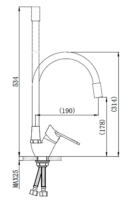 Функциональный однорычажный смеситель для кухни с гибким изливом подойдет для мойки любого размера и стильно дополнит интерьер кухни. При производстве смесителей ТМ РМС используются только высококачественные материалы. Все модели проходят процесс гальванизации, что придает им большую износостойкость и улучшает антикоррозийные свойства. Хромированная поверхность не потеряет со временем свой роскошный вид, а уход за ней сводится к протиранию мягкой салфеткой.