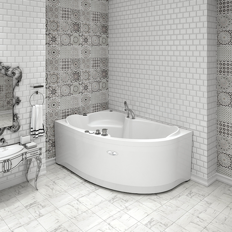 Угловая конструкция акриловой ванны "Ирма" позволяет компактно разместить ее в ванной комнате стандартной городской квартиры.