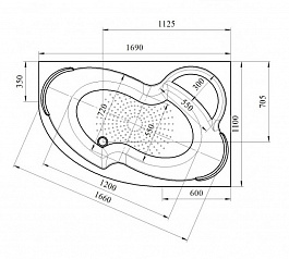 Специально разработанное внутреннее пространство чаши имеет сразу три посадочных места: с двух сторон ванны есть подголовники, а в углу находится небольшое отформованное сиденье. Ванна имеет большую глубину и объем 320 литров, что обеспечивает хорошее погружение тела в воду и комфорт во время водных процедур.