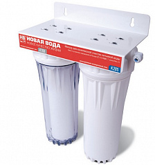 Фильтрующее устройство Новая Вода Е210 относиться к классу классических фильтров для воды устанавливающихся под мойку. Он состоит из двух ступеней очистки обеспечивающих как тонкую механическую, так и очистку воды на органолептическом уровне. Модель фильтра под мойку Е210 состоит из двух корпусов, первый корпус прозрачный для визуального контроля механических загрязнений, второй непрозрачный, внутри них находятся элементы фильтрации в виде картриджей Новая вода К100, Новая вода К205. Также возможна модификация и картриджем Новая Вода К200. В комплект входит кран шарового типа.