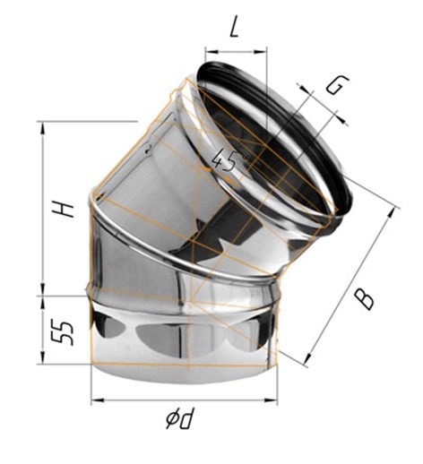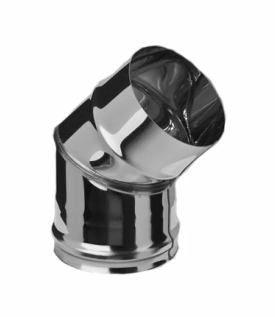 Колено угол 0,8 мм нержавейка от компании FERRUM применяется в качестве соединительного элемента дымохода печи для бани. Этот отвод позволяет на 45° повернуть дымоход и вывести его в удобном и безопасном месте стены (потолка) парилки. Для уменьшения засорения дымохода бани сажей рекомендуется делать как можно меньше углов (поворотов) и максимально избегать горизонтальных участков печных труб.