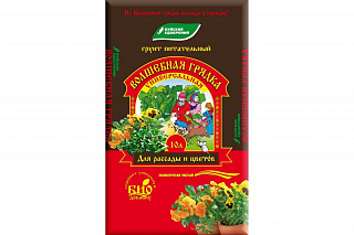 Питательный универсальный грунт Буйские Удобрения Волшебная грядка 10 л предназначен для выращивания рассады овощных и цветочных культур, декоративных горшечных растений и выгонки зеленых культур.