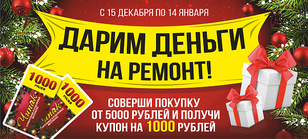 Праздник – это всегда подарки! При любой покупке от 5000 рублей, совершенной в любом из магазинов «Чипак», вы получите купон, который дает скидку на последующие приобретения. Чем выше сумма, тем больше купонов на скидку!